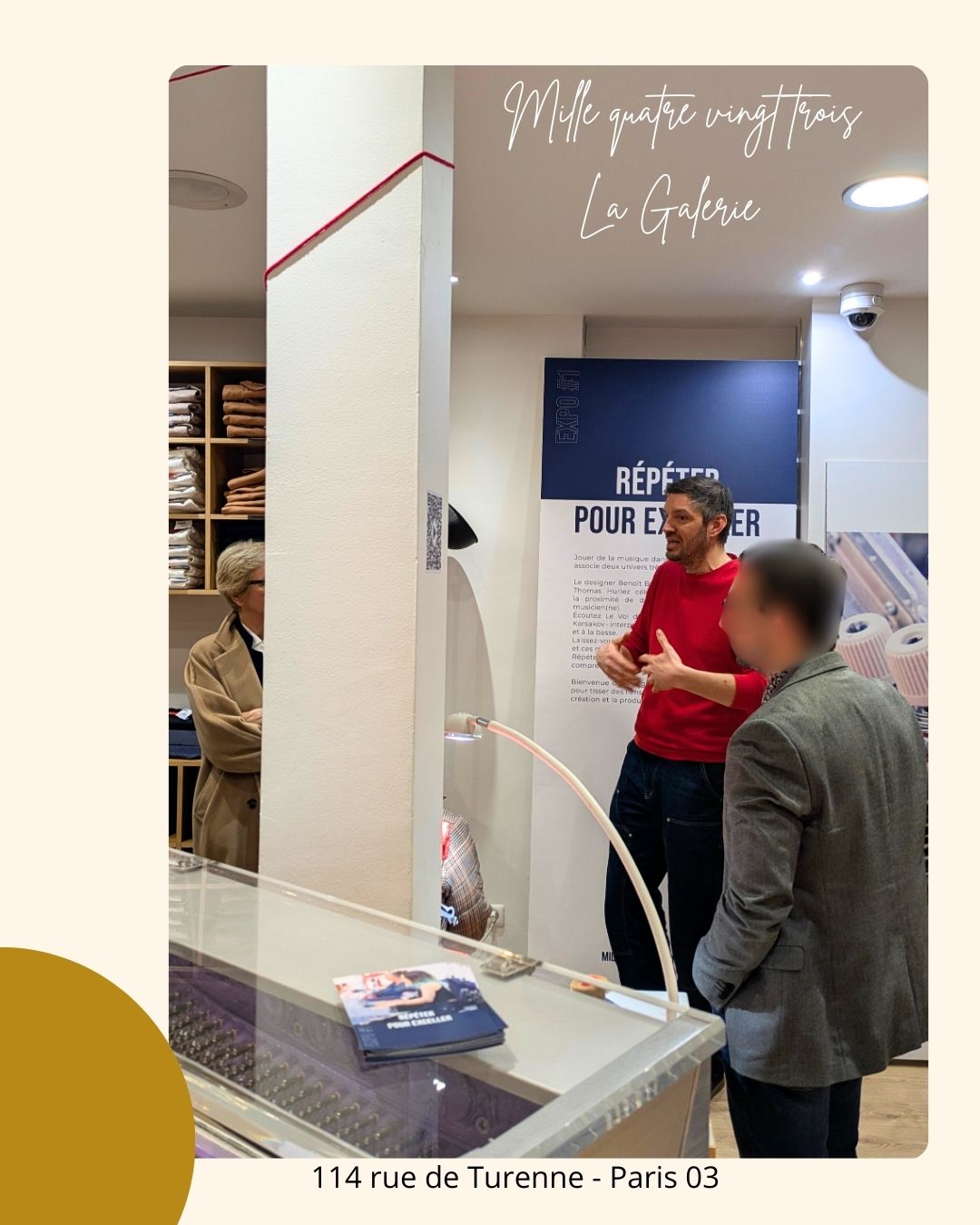 Pensée avec l’aide du designer Benoît Brissart, l’exposition intitulée “Répéter pour exceller” met en lumière les gestes, la répétition et la précision. Elle a vocation à circuler dans les autres boutiques 1083, et verra le 15 mars un autre thème prendra sa suite.
