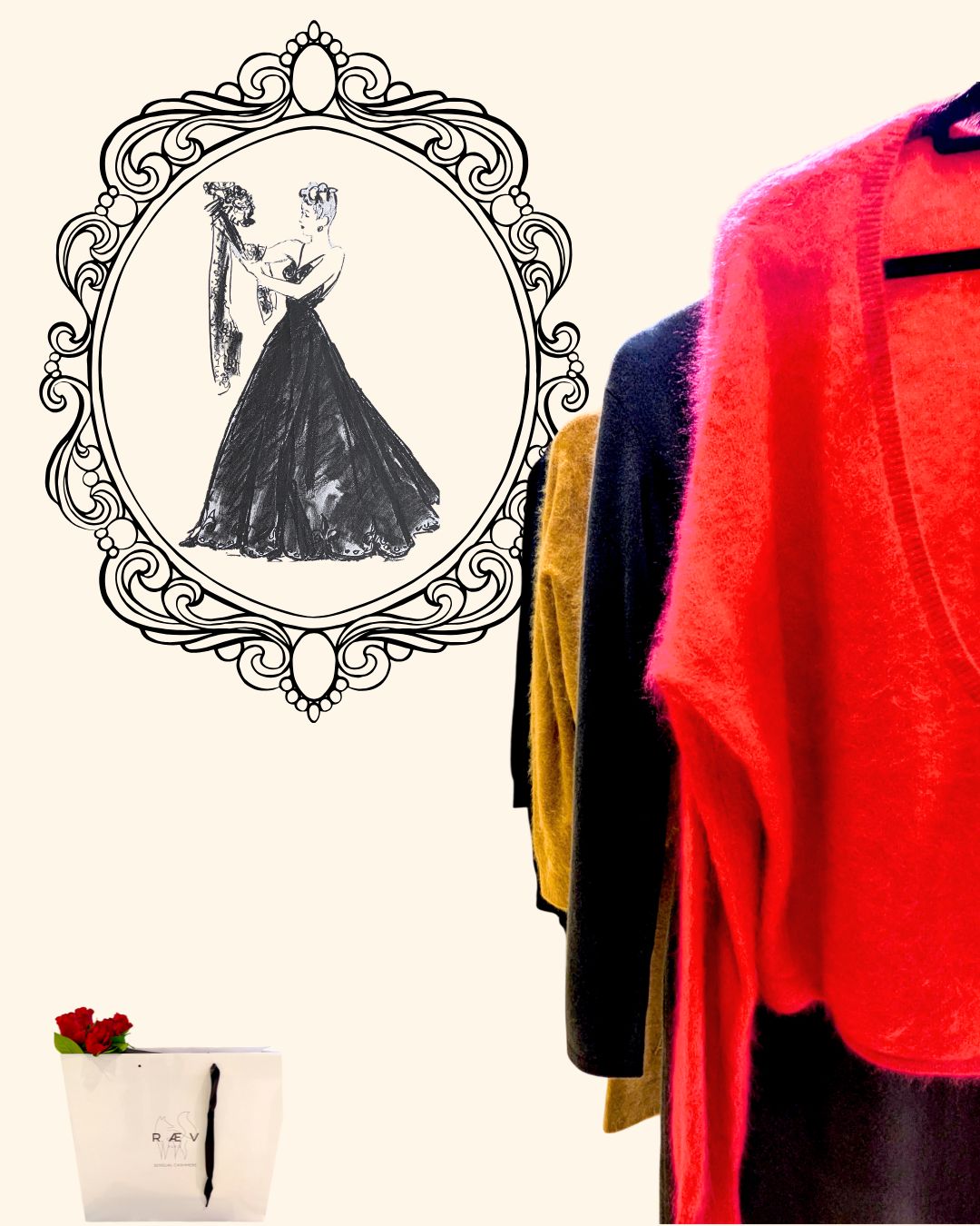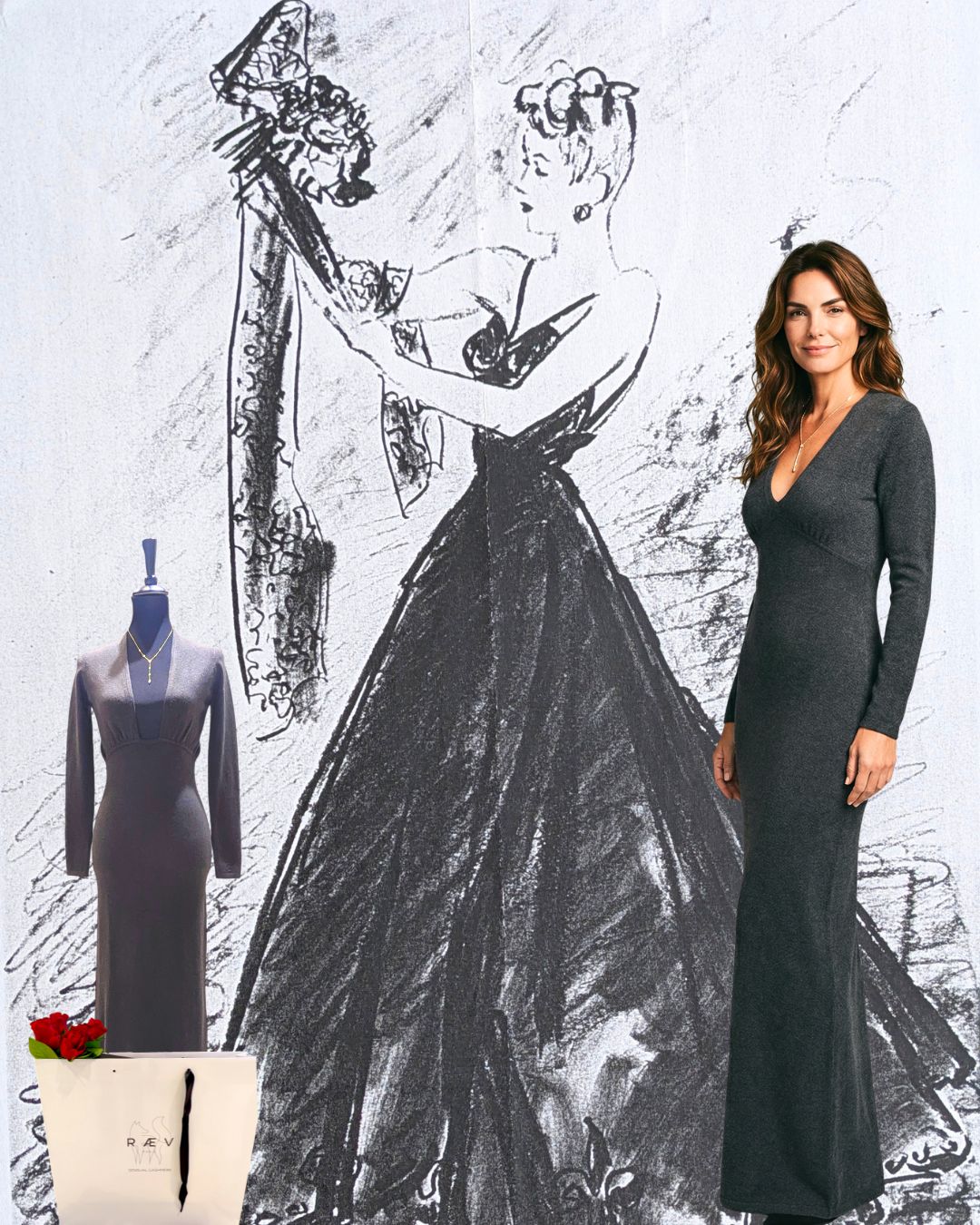 Entre les saisons qui défilent, les tendances qui nous jouent des symphonies un peu inachevées, on la suit, on ne la suit pas… il y a une valeur qui voyage à travers le temps et son coté intemporel nous ravit, c’est celle de la féminité. Symbolisée par le dessin, issu des archives d’une maison de couture qui a lancé des designers dont les noms sont encore affichés aux frontispices des plus belles boutiques de mode du monde, ce dessin sert d’image du passé pour rendre hommage à une mode, elle très contemporaine, celle proposée par RAEV.