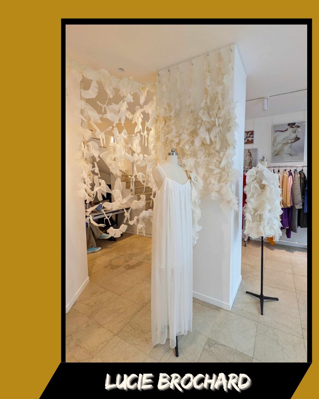 Lucie Brochard, présente à différentes périodes dans son pop-up de Saint Germain des Prés, a choisi d’explorer en cet automne 2025, les textures, le mouvement et la transparence du feuillage. Elle présente « feuille de Soie », une ligne fluide et architecturée, par laquelle elle démontre sa maîtrise de la soie sous toutes ses déclinaisons. Travaillées en volume, sculptées, superposées, les feuilles de Soie font également l’objet d’une capsule exclusive dédiée à l’univers du mariage. Cette nouvelle collection puise dans l’ADN de la créatrice, incarnant une femme audacieuse, élégante, libre et singulière. Chaque création explore le mouvement, la légèreté et la transparence dans cette recherche constante d’équilibre entre modernité, tradition et respect des savoir-faire.