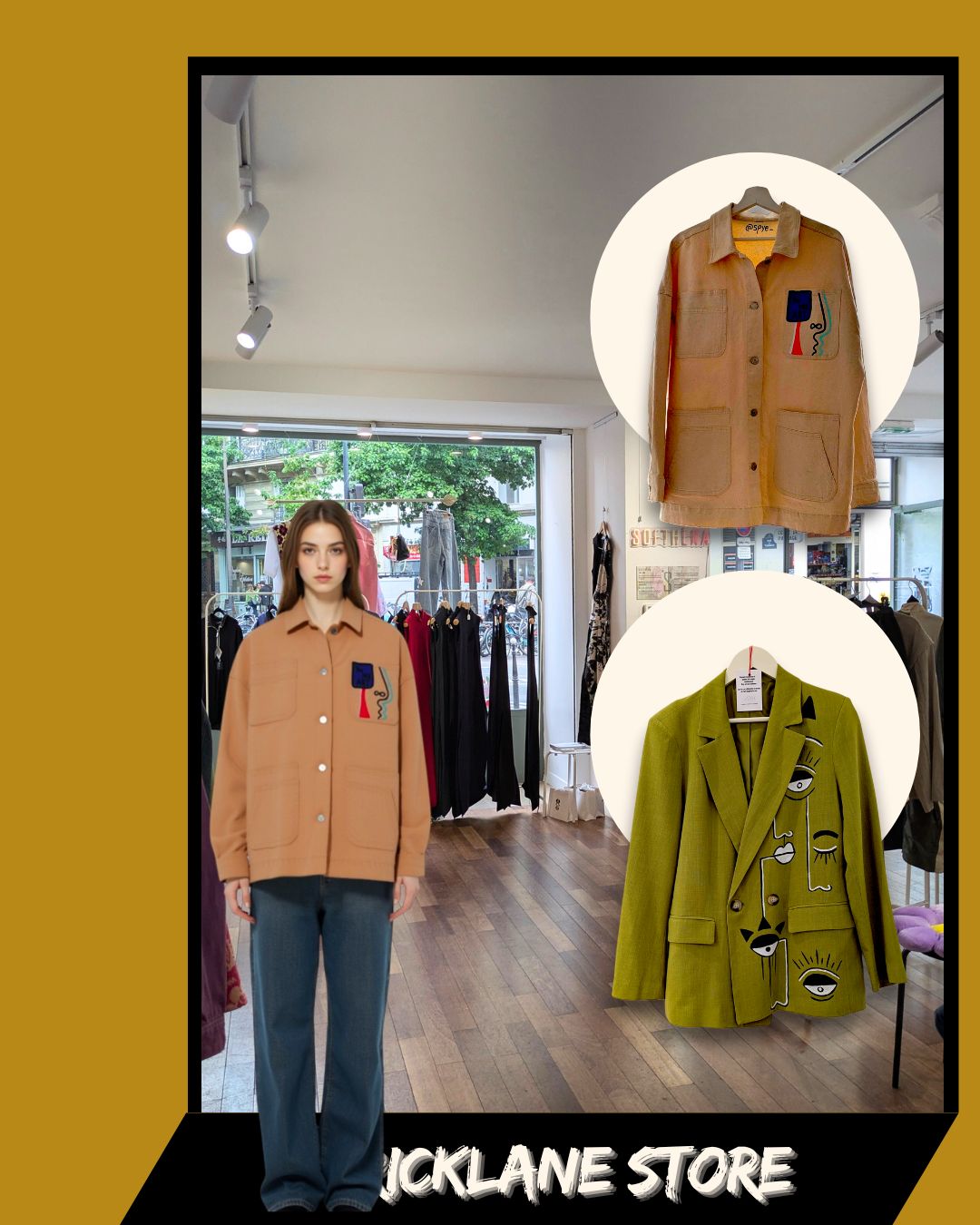 SPYE, propose aussi des moèles qui sont à l’opposé de la grande série. La fondatrice a choisit de peindre à la main sur des vêtements non-genrés (principalement vestes en jean, blazer et trenchs), en transformant chaque pièce en une oeuvre unique et personnelle.