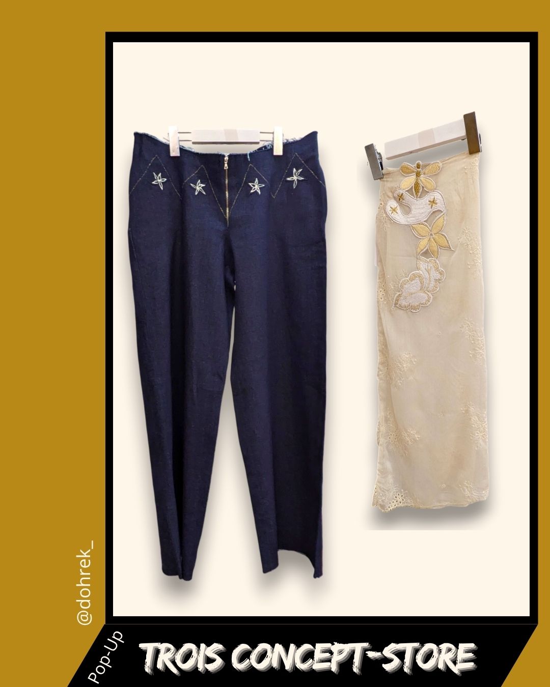 Dohrek est une marque créée par une jeune femme africaine qui vit entre Paris et le Sénégal. Les modèles sont imaginés à Paris et réalisés dans un atelier à Dakar. Un vestiaire complet imaginé dans une ligne très contemporaine, féminine, qui fait une belle place aux talents de broderie que possède ce continent africain.