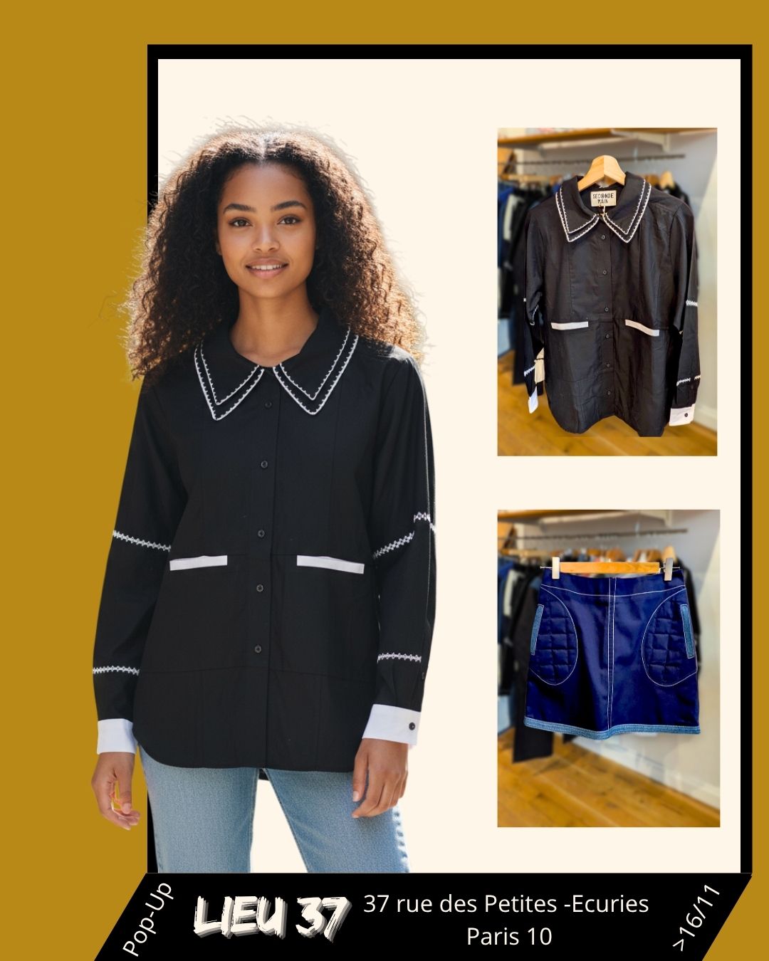Sa collection à la ligne contemporaine est produite avec un atelier parisien et des deadstocks pour associer style et éco-responsabilité.