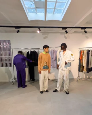 Toute la collection est à découvrir sur le site de la créatrice, à l’inspiration rock et punk, qu’on avait pu suivre sur Ulule lors de ses préparatifs. Elle intègre dans ses matières, le vinyle, léger et souple, idéal pour être visible lors d’une fête et dont le modèle de combinaison présenté ici attend sa destinataire afin de voir si elle est aussi bien coupée qu’elle a l’air d’être imaginée.
